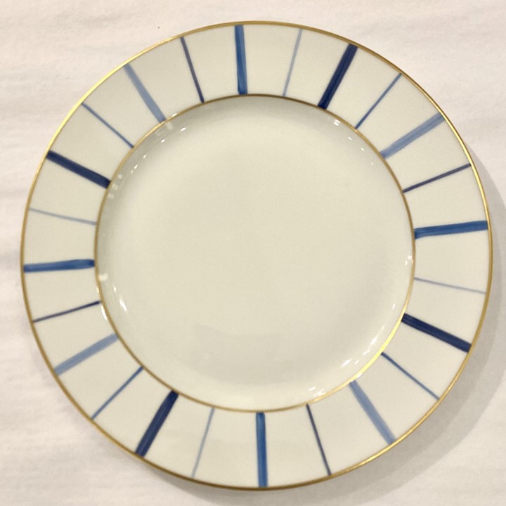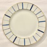 MARIE DAAGE BERLINGOT DESSERT PLATE WITH STRIPES OF ASSORTED BLUES