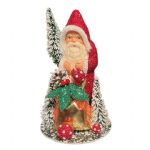 pinnacle peak trading Ino Schaller Red Glitter Santa with Bag and Mushrooms