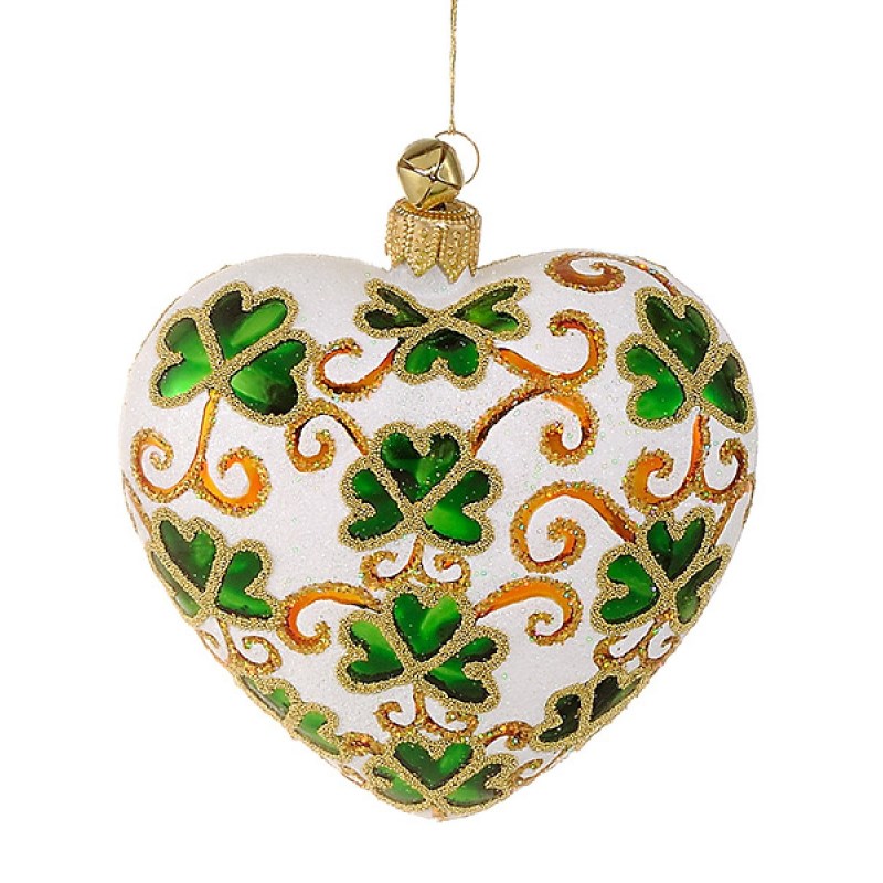 Handcrafted European Glass Irish Clover Patterned Heart Christmas Ornament