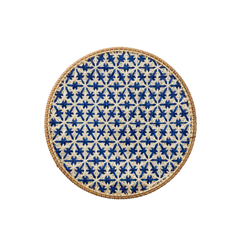 A tribute to nature?s harmony, the Lanai Placemat radiates sunshine and happy vibes year-round. Hand-dyed cobalt blue bamboo strips are woven into a honeycomb-inspired floral motifs, which are framed in rattan. With the ease of island leisure and the polish of understated luxury, it moves effortlessly from dining room tables to garden lunches.