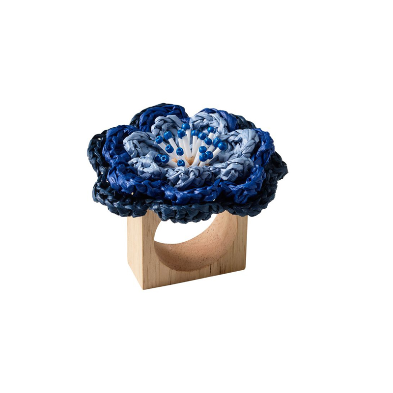 Hand-crocheted with a raffia-style flower in various shades of coastal and nautical blues, the Pareo Napkin Ring adds natural texture and layered dimension. Slip one on a napkin for an effortless accent that feels fashionable yet relaxed.