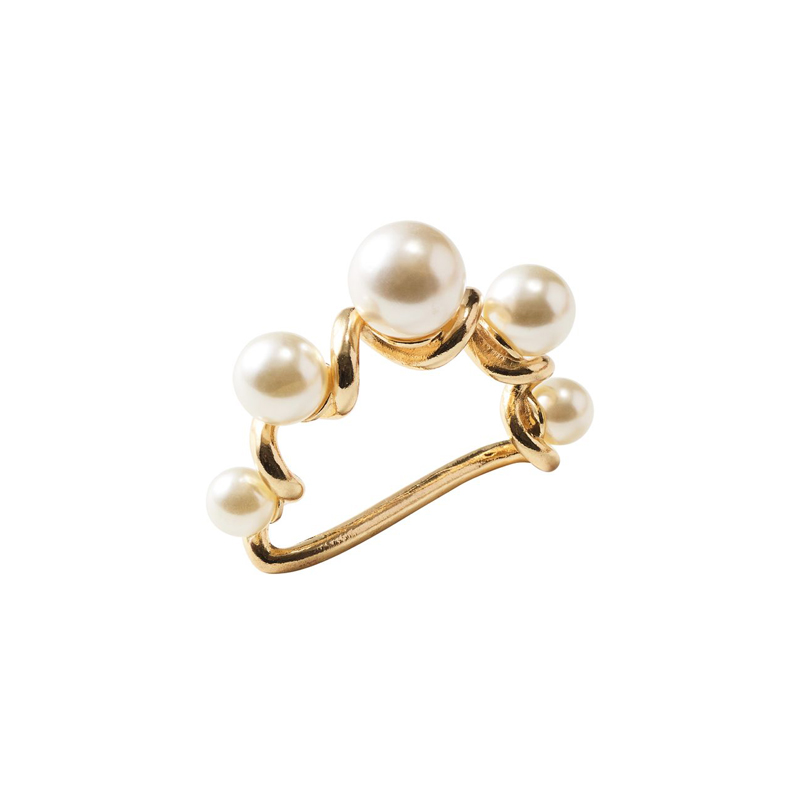 The Pearl Drift Napkin Ring features five pearls set upon a gracefully swirling gold base. With it's gleaming and pearlescent hues, the glamorous and elegant napkin ring leans towards more formal table setting styles. This jewel is perfect for grand festivities and milestone celebrations.