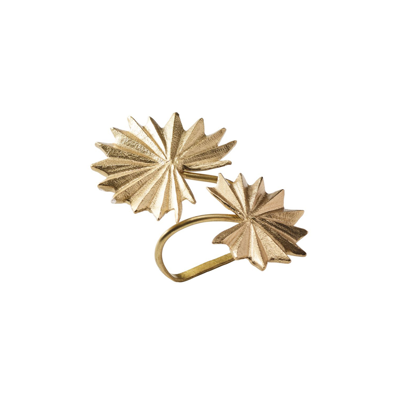 The modern frond. The brass Palmera Napkin Ring turns over a new leaf with crisp, sculptural lines and a gleam of bold metallics. In contemporary table settings, it reads as both refined and decorative, easily adaptable to many table styles. For a timeless tropical note, pair with the Palmera Napkin.